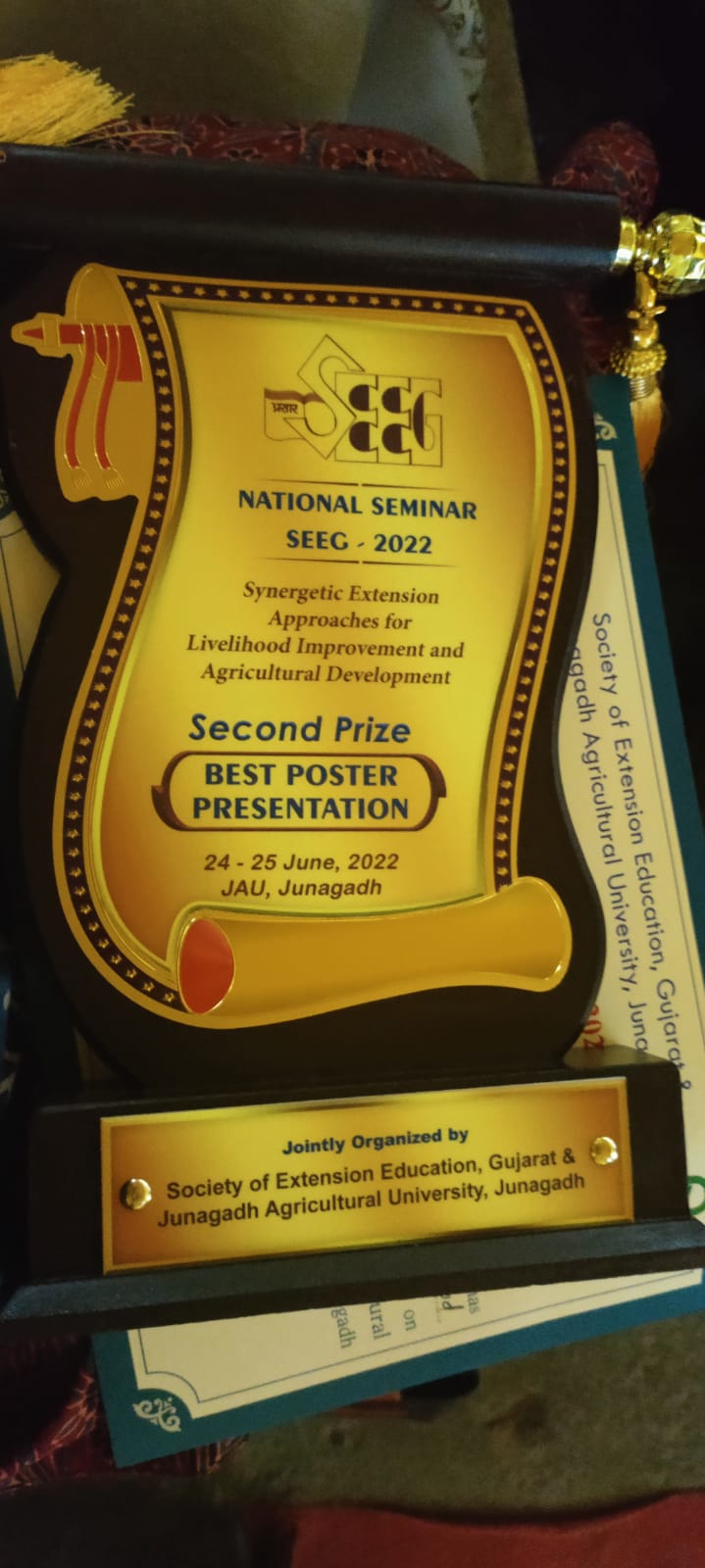 Dr.Neha TIwari SMS KVK Amreli received Young Scientist Award at National Level 2019